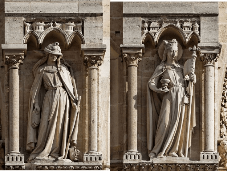 Synagoga et Ecclasia, two statues on the Notre Dame cathedral representing the Jewish and Christian faiths. This juxtaposition of crowned Church standing strong next to the Synagogue who is “blind to Jesus,” the ten commandments almost falling from her hand, is unfortunately depicted in numerous artworks of Medieval Europe.